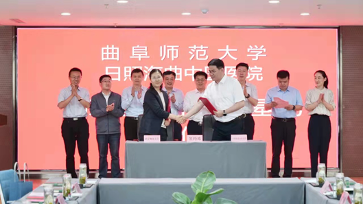 日照校区办公室讯 5月31日,华体会官方网页版_华体会(中国)与日照海曲中医医院举行教学科研基地揭牌仪式。曲阜师大党委常委、副校长胡凡刚,高新区工委副书记、管委副主任孙钰出席活动。