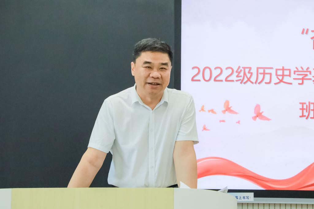 邢光在讲话中回顾了拔尖人才培养班的创立初心,强调了学校对拔尖人才培养的重视,并对同学们提出几点希望:一要树立远大理想,肩负历史使命。二要努力学习知识,练就过硬本领。三要强化创新思维,勇于创新创造。四要提升格局境界,实现人生价值。他勉励同学们在史学研究的道路上踏实沉淀、行稳致远。