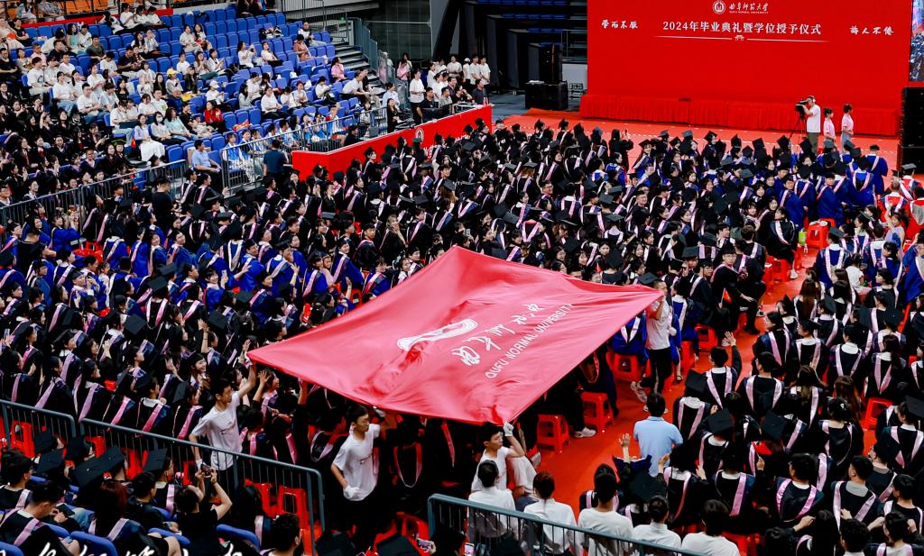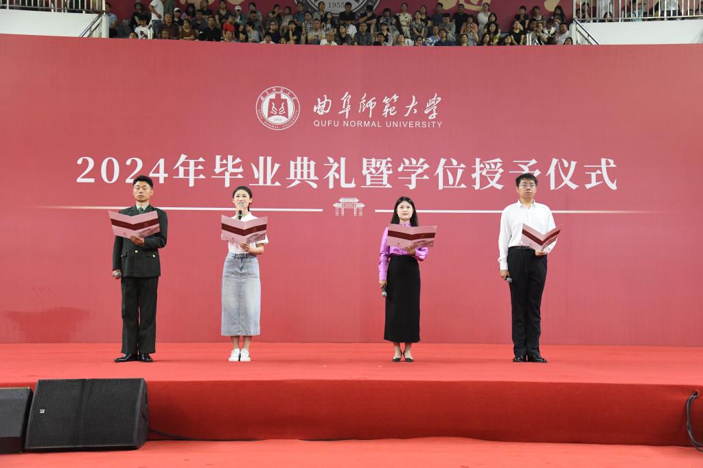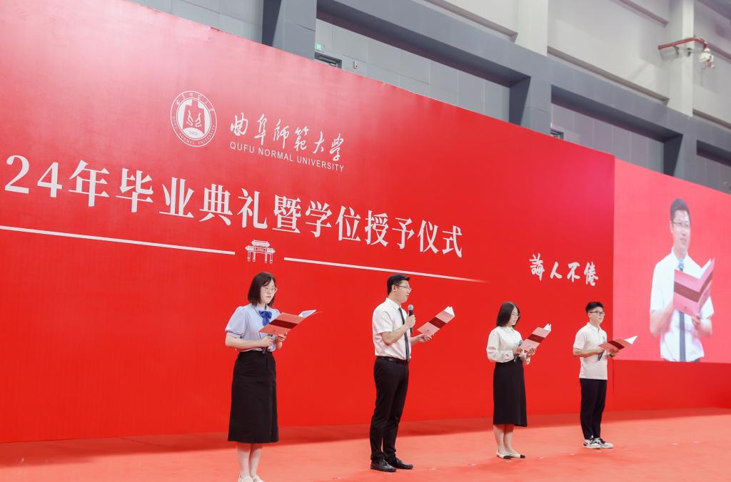 “看着你们一步一步褪去青涩,成长为挺膺担当的时代青年,我和你们的父母一样,充满自豪、倍感欣慰!”张洪海在典礼上说,回首同学们的大学之路,大家遇见曲园,在儒风海韵中留下了乐学笃行的最美青春;不负曲园,在逐梦前行中见证了学校高质量发展;再见曲园,希望大家毕业离校之时一同带上曲园的校训精神、师道传统和曲园学子共有的心怀家国、艰苦奋斗、自强不息、敢为人先的精神特质,心有繁星、追光而行,开拓人生、奉献社会,奏响无愧于时代的青春之歌。