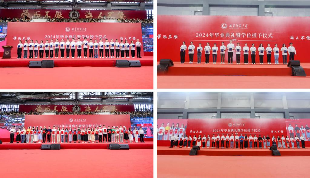 “亲爱的老师,您再多唠叨几句吧,走出校门我们就再也听不到了。”“犁牛之子骍且角,老师为你们骄傲!曲园的每一盏路灯,都是你们奋斗求索的见证。”“感谢老师,感恩母校,庇我以荫,成我以德,立我以学。”……典礼上,在中国教师博物馆志愿服务1500多个小时并将奔赴陕西支教的文学院本科生王葆嘉,在国际权威期刊发表了8篇SCI论文的工学院硕士研究生姬春婷,即将成为一名光荣的人民警察的体育科学学院本科生王晓,斩获全国师范生教学竞赛一等奖的地理与旅游学院本科生叶繁,捧回“互联网+大赛”国奖的经济学院本科生张孝林,成功直博中科院的物理工程学院本科生刘昶江,与马克思主义学院副教授汤锐、生命科学学院毕业班辅导员袁晓涵一起,师生携手共同演绎了一场“爱在曲园”的深情对话,既道出了“曲园,我爱你”的真挚情愫,也传递出崇学尚教、就道弘道的大学文化底蕴。
