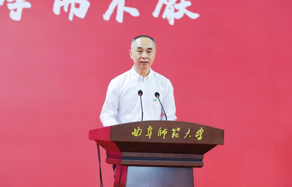 “齐鲁盛开曲园花,天涯海角作栋梁。”张洪海勉励毕业学子们要厚植家国情怀,坚定理想信念;矢志创新创造,练就过硬本领;勇于砥砺奋斗,敢于攻坚克难;坚持知行合一,善于担当作为。张洪海说,毕业不是终点,而是人生新起点。前进的路上也许会有“将登太行雪满山”的无奈,会有“欲渡黄河冰塞川”的困苦,这就需要大家葆有“山塌不后退、浪打不低头”的青春锐气,做疾风劲草、当烈火真金,把握历史机遇、担负时代使命,志存高远,脚踏实地,用青春的能动力和创造力为推进中国式现代化贡献青春力量。