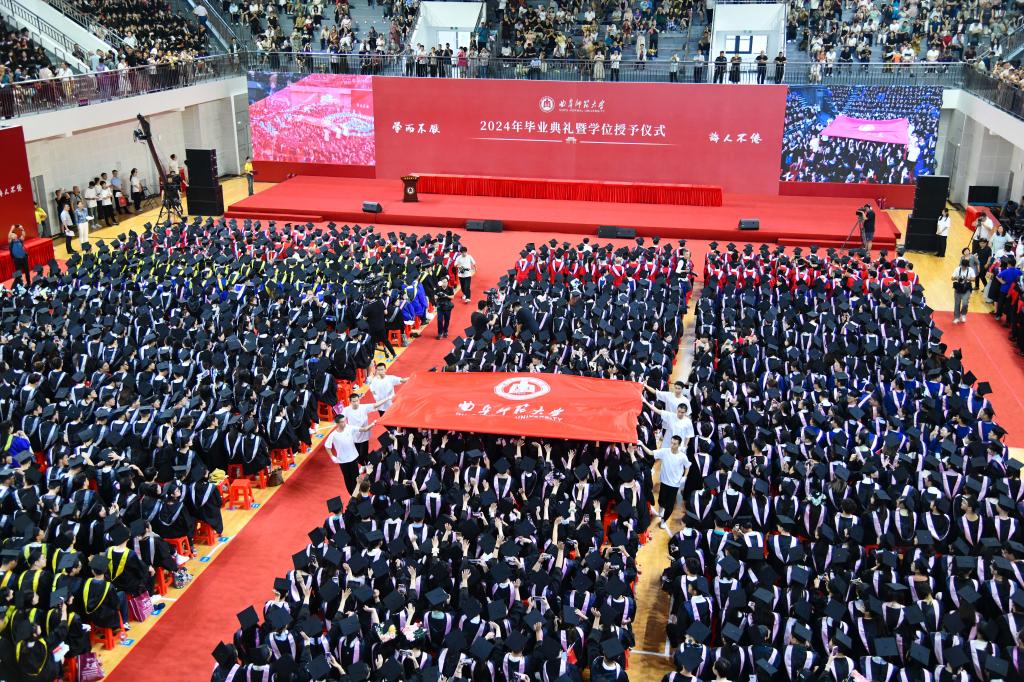 曲阜师大党委宣传部讯 6月16日上午,华体会官方网页版_华体会(中国)2024年毕业典礼暨学位授予仪式隆重举行,8418名本科生、2160名硕士研究生、160名博士研究生,在儒风海韵中聆听大学“最后一课”、共享青春荣耀时刻、谱写最美毕业骊歌。