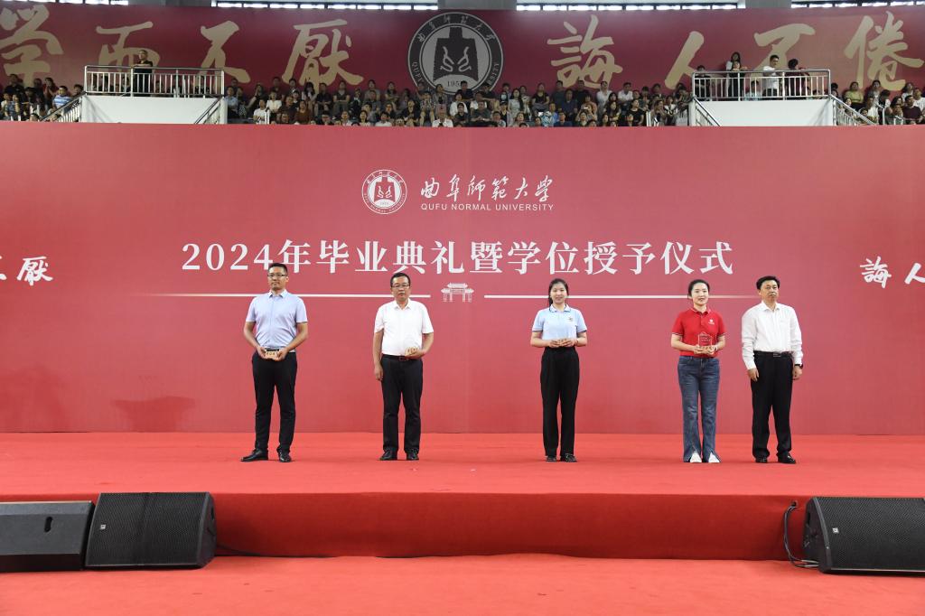邢光、张洪海为学校首届“我喜爱的曲园好老师”颁发荣誉奖杯,共有数学科学学院辅导员韦宁、文学院辅导员肖黎、网络空间安全学院辅导员武玉龙、马克思主义学院教师汤锐、工学院教师李磊、传媒学院教师刘波、管理学院教师韩丽、计算机学院教师马春梅、体育科学学院教师伊超、法学院教师袁辉等十名教师获得表彰。“我喜爱的曲园好老师”是经2024届全体毕业生推荐并由全体学生投票评选,见证着尊师重教、师生情深。