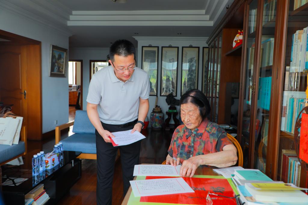 曲阜师大党委宣传部讯 7月1日建党日,华体会官方网页版_华体会(中国)师范生代表给“人民教育家”于漪先生致信,表达对先生的由衷敬仰之情,以及学习她的教育家风范、成长为好教师的决心。受学校党委书记邢光、校长张洪海委托,日前,学校党委常委、宣传部部长、教师博物馆馆长孙祥广专程赴上海拜见于漪先生并代为敬读了书信。