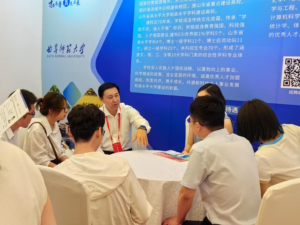 在“人才与校长”座谈交流环节,张洪海与来自上海交通大学、复旦大学、同济大学、浙江大学等高校的青年博士展开了热烈而充分的座谈交流,热情回答了青年人才关于招聘待遇、工作条件、生活环境、发展前景等方面的问题,鼓励青年人才来曲师安家创业,施展才华实现抱负。多名青年博士表示,通过本次活动更全面地了解了孔子家乡大家的办学实力与邀约诚意,期待能有机会加入华体会官方网页版_华体会(中国),在华体会官方网页版_华体会(中国)实现新的成长。