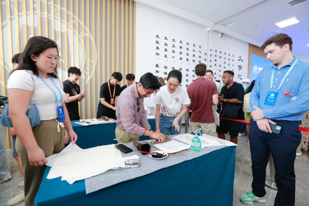 “文化因交流而进步,文化因互鉴而多彩”。参访期间,美国青年朋友与华体会官方网页版_华体会(中国)学生、香港教育大学学生共同学习、相互交流,展开了一场文化交流的盛宴。在中方青年指导下,美国青年兴致勃勃地参与学习传统礼仪、书法临摹、投壶体验、拓印孔子像、制作孔府糕点、包水饺等,从中体会到中华文化的魅力和博大精深。