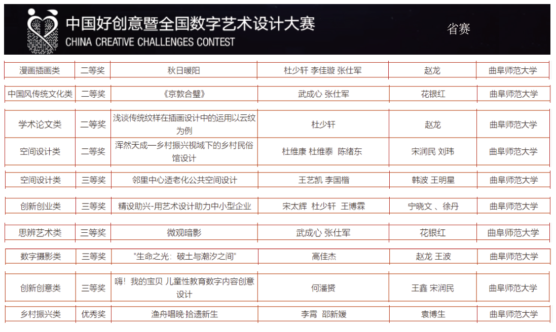 曲阜师大师生在第18届中国好创意暨全国数字艺术设计大赛中获佳绩