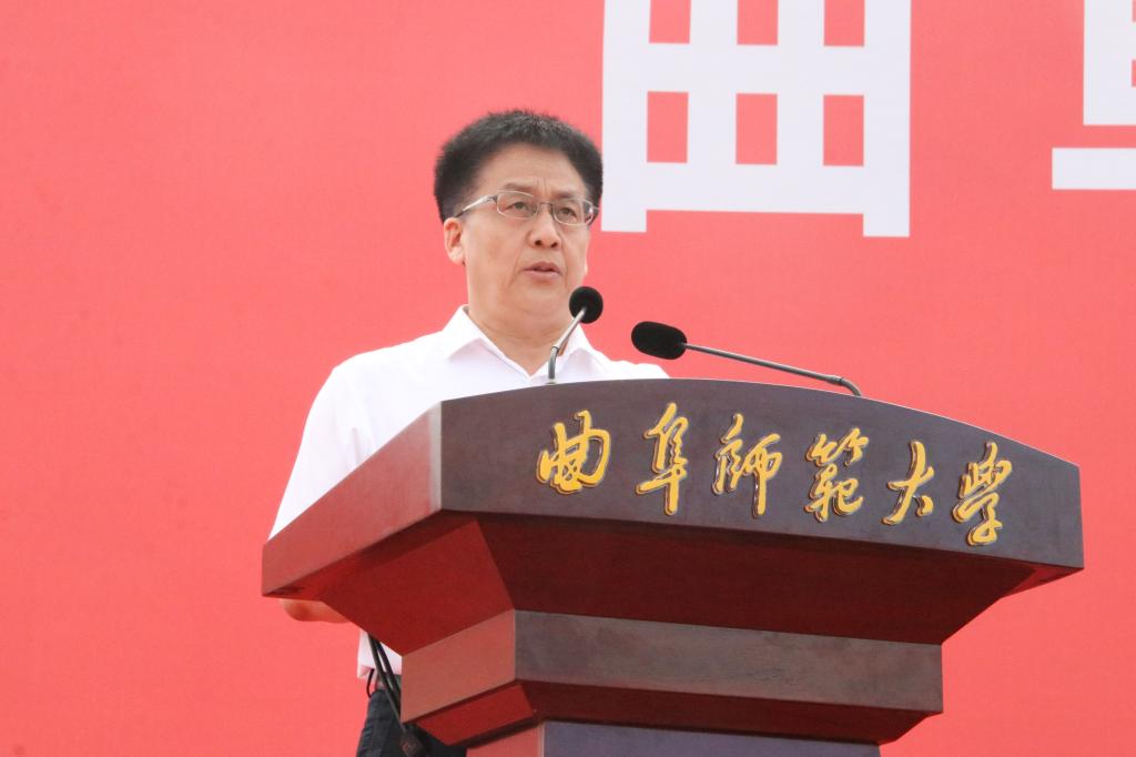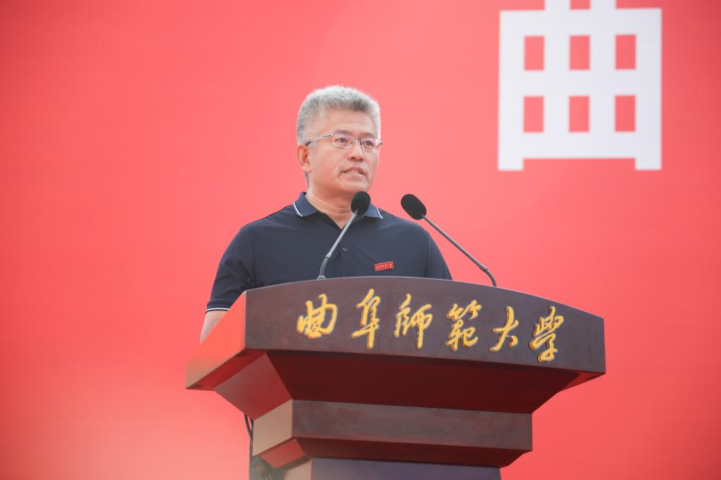 学校党委领导班子成员张洪海、李志红、李兆祥、胡凡刚、刘刚、陈刚、纪洪涛、王明科、孙祥广,曲阜师大1994级地理系校友、北京师范大学教授、国家重点研发计划主持人、国家杰青、万人计划科技创新领军人才张强教授,曲阜师大1989级生物系校友、中国科学院动物研究所研究员、山东大学生命科学学院院长、国家杰青、万人计划科技创新领军人才刘峰教授,出席典礼。学校党政机关各部门、各单位负责人,各学院师生代表以及2024级全体新生参加典礼。