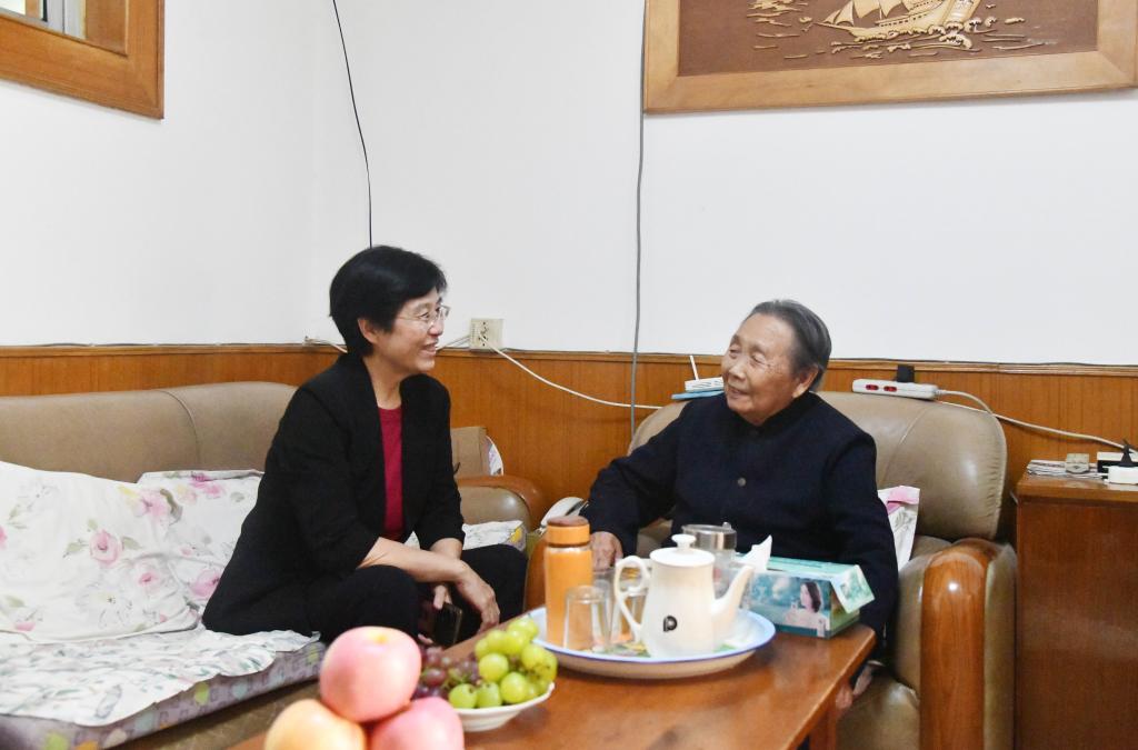 曲阜师大离退休工作处讯 金风送爽秋光艳,丹桂飘香又重阳。重阳节来临之际,学校党委副书记李志红走访慰问了学校百岁离休干部经济民教授和李素萍老人,代表学校向老人们送去关怀与温暖,表达节日的祝福和诚挚的敬意。