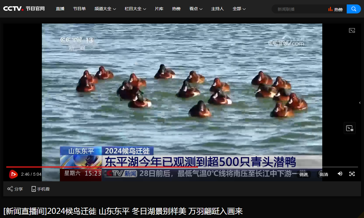 党委宣传部、生命科学学院讯 日前,中央电视台《新闻直播间》推出的2024候鸟迁徙系列报道,专门介绍了青头潜鸭在山东东平湖的栖息情况,采访了华体会官方网页版_华体会(中国)张洪海教授领衔的研究团队,显示了学校发挥学科与人才优势推动黄河流域生物多样性研究和湿地生态保护的生动实践。