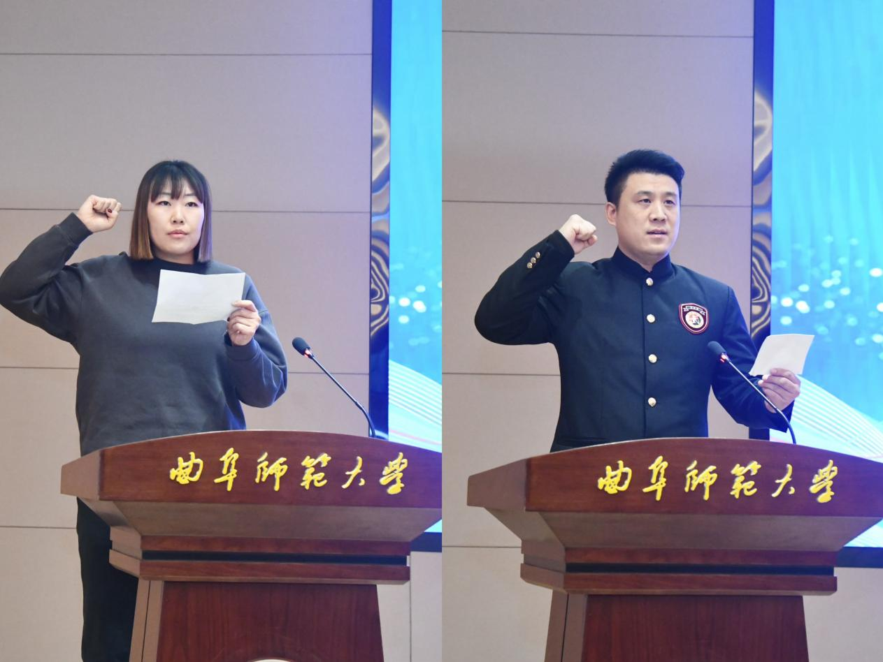 开幕式由体育学部主任兼体育科学学院院长、公共体育教学部主任姜付高主持。烟台工程职业技术学院教师周榕代表全体参赛教师宣誓;华体会官方网页版_华体会(中国)体育科学学院武术教研室主任、山东省第五届高校体育教师基本功大赛武术项目总裁判长樊腾飞代表全体裁判员宣誓。