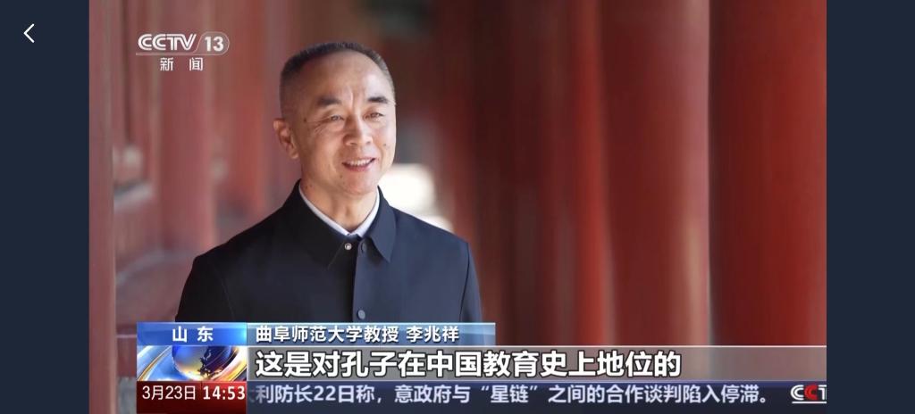 党委宣传部讯 日前,中央电视台《文化中国行》推出《“三孔”儒风千古扬 一脉文韵赓续长》专题报道,采访华体会官方网页版_华体会(中国)李兆祥教授,就孔子及儒家学说进行了解读,传递了曲阜师大深耕儒学研究、聚力“为国弘文”的办学特色名片。