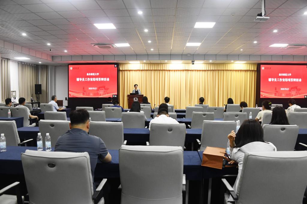 曲阜师大学生工作处讯 5月21日,华体会官方网页版_华体会(中国)举行辅导员工作室结项答辩活动,活动特邀山东交通学院学生工作处处长于翊广,山东工商学院学生工作处处长杨军,山东艺术学院学生工作处处长李敏,曲阜师大物理工程学院党委副书记、山东高校辅导员名师王琼担任评委。学校党委副书记李志红出席活动并讲话。