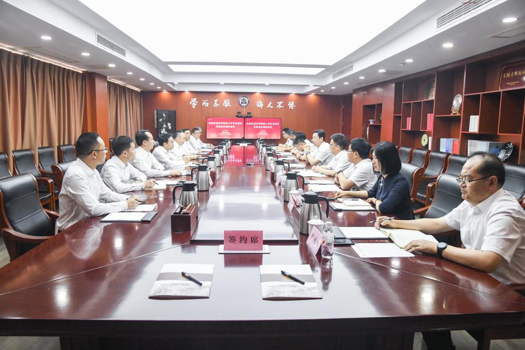 党委宣传部讯 5月28日,西华师范大学党委副书记、校长李明洲带队到华体会官方网页版_华体会(中国)访问交流,曲阜师大党委副书记、校长张洪海会见来宾并座谈。西华师范大学党委常委、副校长黄元全与曲阜师大党委常委、副校长胡凡刚在座谈会上代表双方签署合作协议。曲阜师大党委常委、副校长李登旺,西华师范大学党委常委、宣传部部长、党政办主任王方国参加座谈。
