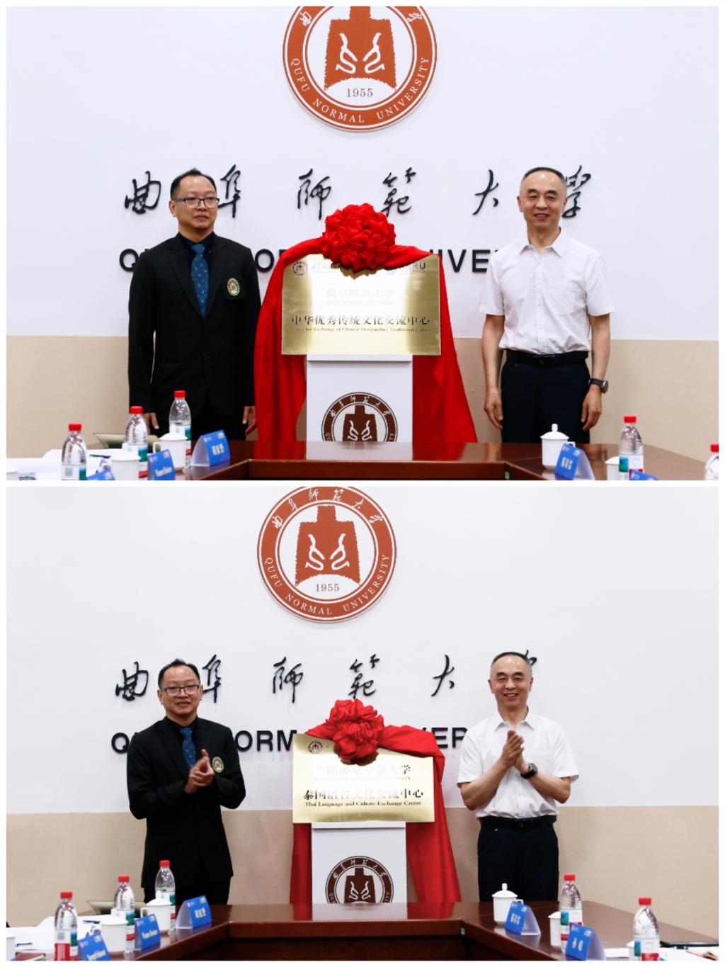 李兆祥和Sinat Koslanant共同为在华体会官方网页版_华体会(中国)设立的泰国语言文化交流中心,以及在兰帕潘尼皇家大学设立的中华传统文化中心揭牌。