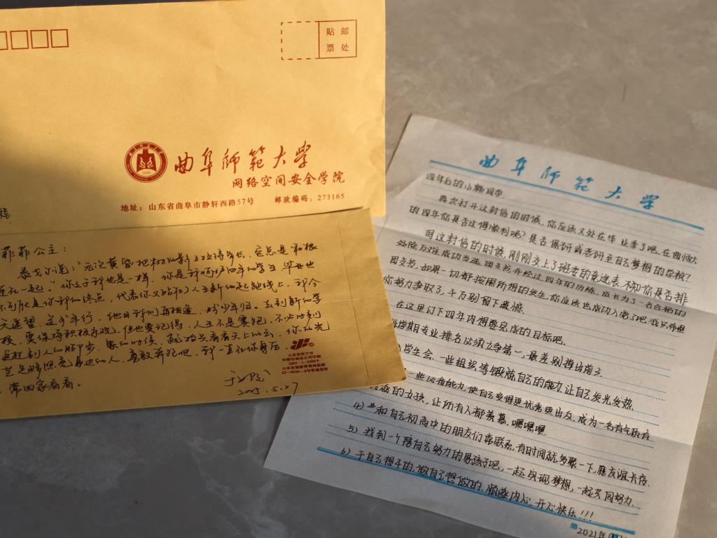 “我保存的这388封信件,是同学们在2021年9月26日大学第一次班会上写给四年后的自己的,我和同学们约定毕业时再打开这封来自十八岁的信件。”当毕业骊歌响起、四年之约来临,华体会官方网页版_华体会(中国)网络空间安全学院辅导员于媚媛拿出保存完好的一封封信件,逐一给每封信写上一份毕业赠言。