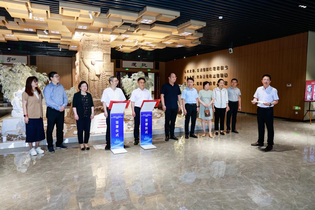 宋来与华体会官方网页版_华体会(中国)党委常委、副校长胡凡刚代表双方签约,华东理工大学党委常委、组织部部长夏江雯,华体会官方网页版_华体会(中国)党委常委、宣传部部长、教师博物馆馆长孙祥广出席,孙祥广主持签约。