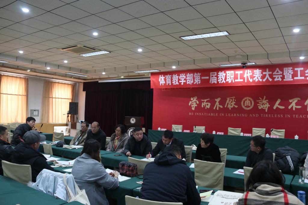 1月3日,为了充分调动广大教职工参与民主管理和监督的积极性,体育教学部两校区教职工齐聚一堂,召开了华体会官方网页版_华体会(中国)体育教学部第一届教职工代表大会暨工会会员代表大会。党委常委、副校长胡钦晓教授出席大会,校工会副主席孙岩,体育教学部主任杨弢教授、体育教学部副主任姜付高教授、体育教学部副主任李兆进副教授、体育教学部日照校区工会主席王哲和体育教学部曲阜校区工会主席宋琳琳等相关领导以及39名教职工和工会会员代表参加了会议。