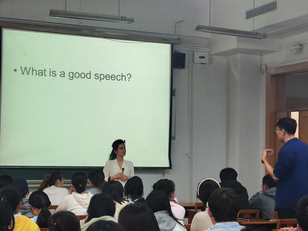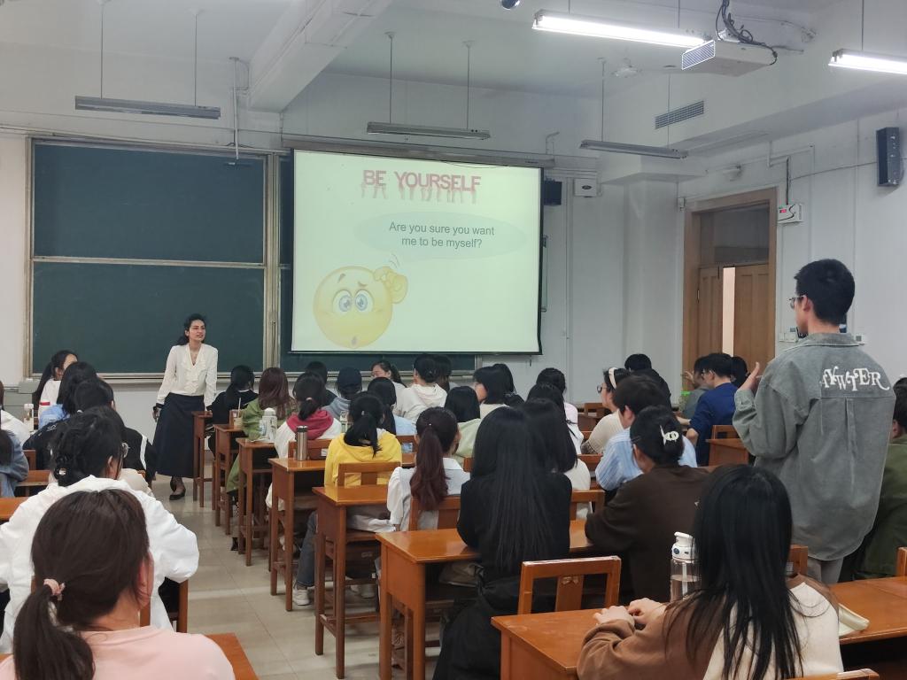本期外国文化主题沙龙以“如何进行一场精彩的演讲”为主题,Nasim Kharkanghamsari女士从自己的演讲经历入手,循序渐进地引导学生了解和掌握演讲技巧。在互动交流过程中,Nasim Kharkanghamsari女士鼓励同学们上台进行交流,并耐心解答同学们在演讲过程中遇到的疑难困惑,指导同学们将本次活动学到的内容应用到演讲当中去。