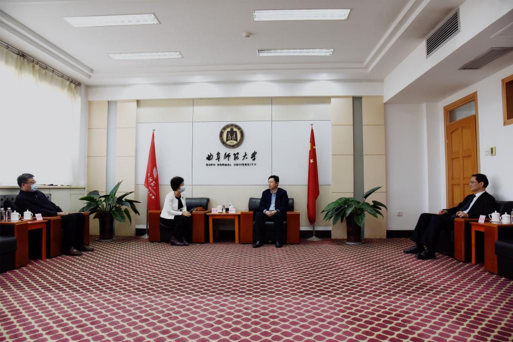 曲阜师大新闻中心讯(记者:李文振 摄影:李文振) 10月15日上午,山东省委统战部常务副部长李琥来校调研指导,校长张洪海,济宁市委常委、统战部部长白山,曲阜市委常委、统战部部长李芳,学校党委常...