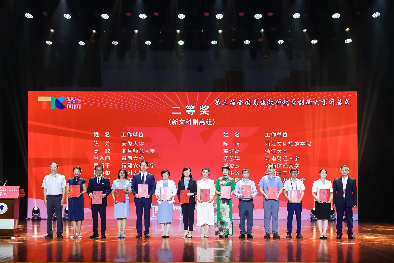 曲阜师大教务处讯 8月22日,第三届全国高校教师教学创新大赛在浙江大学落下帷幕。经过激烈角逐,曲阜师大外国语学院高歌老师领衔的“实用英语语音”教学团队荣获新文科副高组二等奖,这是学校首次在此项...