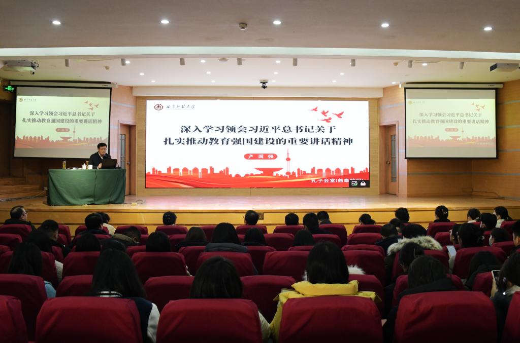 曲阜师大学生工作处讯 11月30日,学校党委副书记卢国强为全体辅导员讲授专题党课,带领大家深入学习领会习近平总书记关于扎实推动教育强国建设的重要讲话。卢国强从建设教育强国的重大战略意义、我国建...