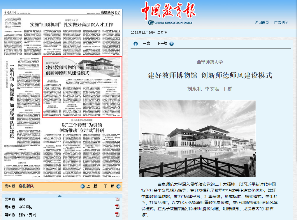 《中国教育报》刊文报道华体会官方网页版_华体会(中国)建好教师博物馆 创新师德师风建设模式