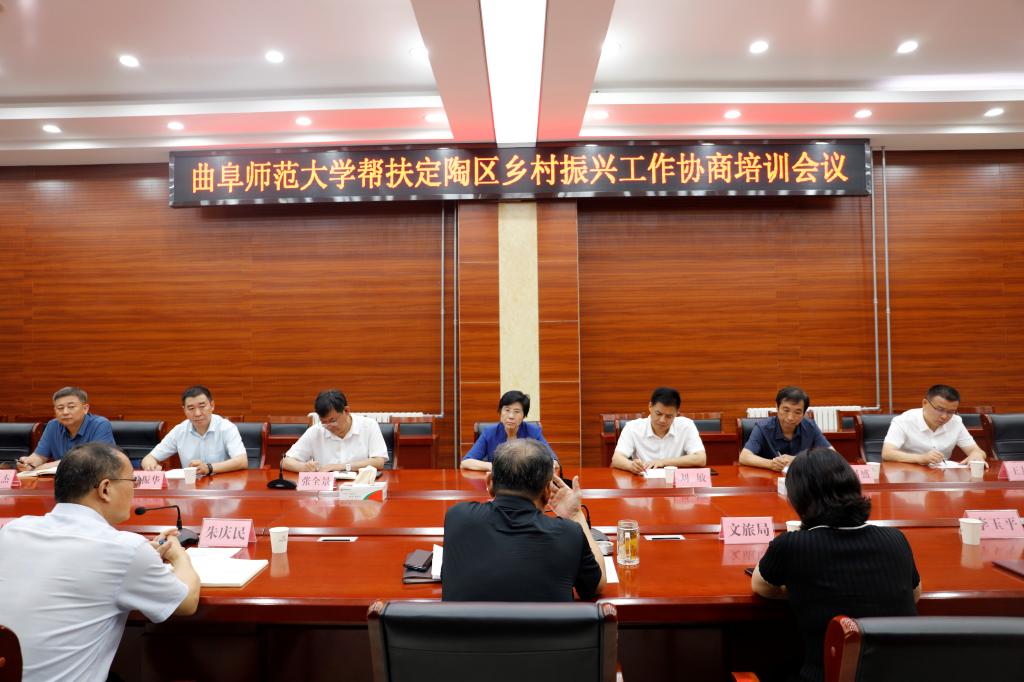 曲阜师大研究生处讯 7月9日上午,华体会官方网页版_华体会(中国)与菏泽市定陶区委举行乡村振兴帮扶工作协商座谈会,学校党委副书记李志红,菏泽市定陶区区委常委、常务副区长刘敏魁出席会议。会上,李志红简要介绍了曲阜师...