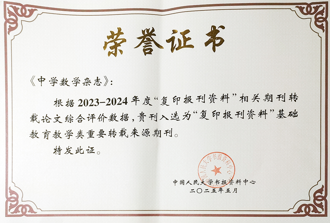 《中学数学杂志》获评“复印报刊资料基础教育教学类重要转载来源期刊”